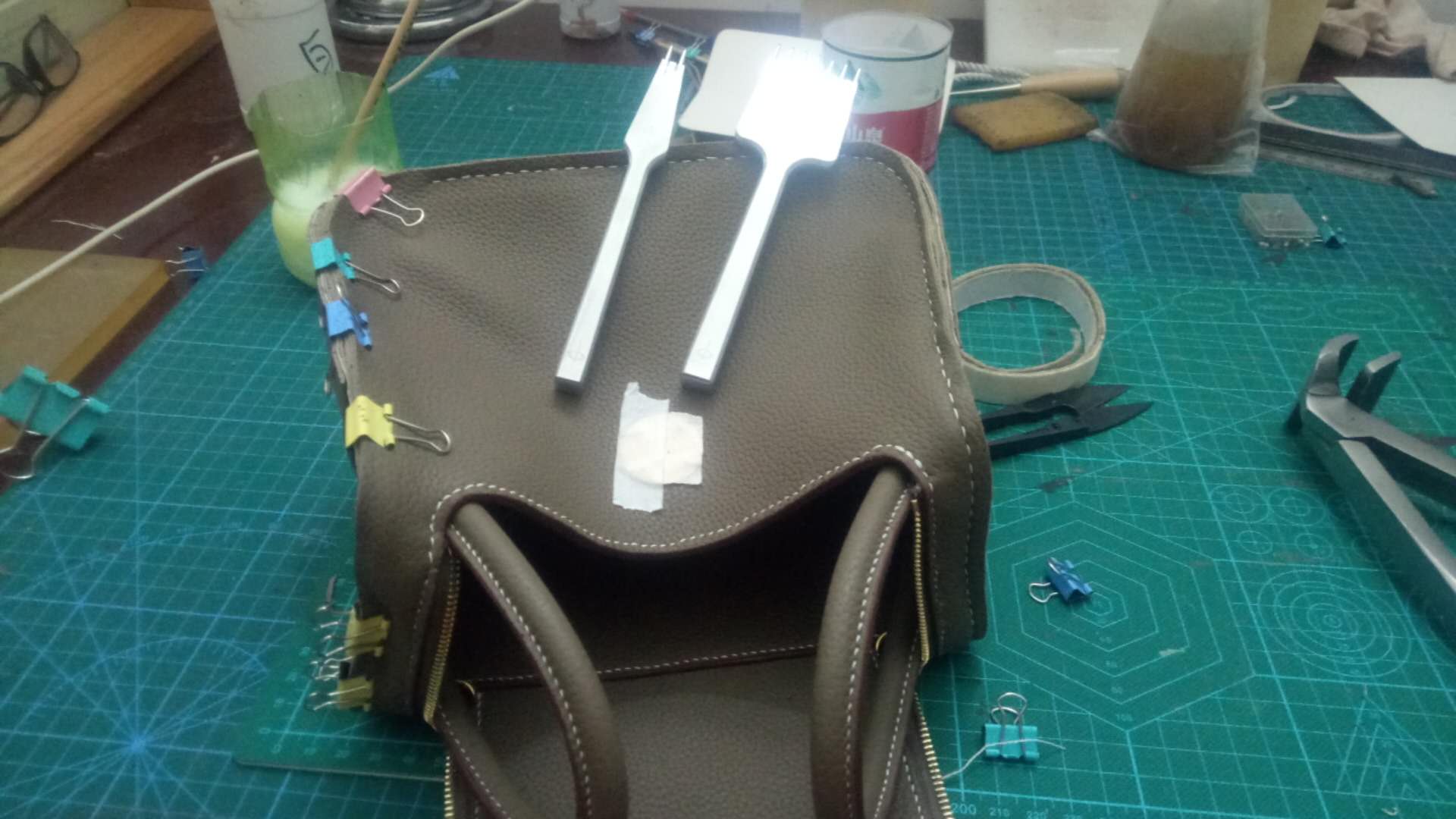 之后再看笔记,整个包的制作及细节过程记在脑中,若有不解处,仍会回看视频。尽量做到能在脑中流畅地演练制作的全过程,在真正做包时不须再看视频。因为我认为在制作过程中卡壳,不仅影响进度,更会产生烦燥情绪,手忙脚乱,从而放松对细节的把控,影响包包的品质。