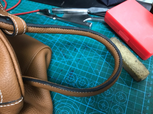 1,lindy30的手挽,版型是精裁完打好斬,然後再包蕊。這樣做的問題,當然避免了修正的問題。但是這個就要考驗膠水的功夫。我自己就有其中一條沒粘齊,凹凸不平太多,由於已經精裁,不敢打磨掉太多,後面的邊油就很難平。
