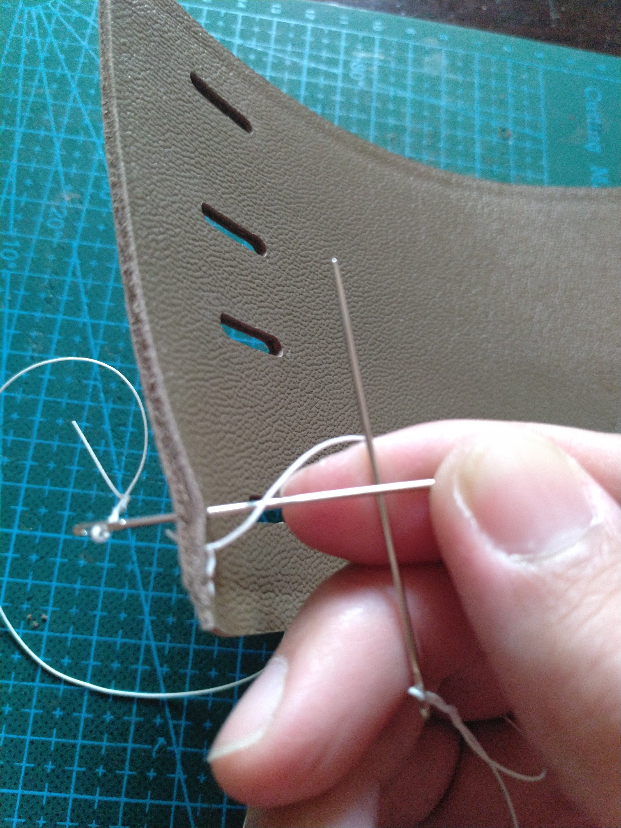 2毫米皮对贴大概是用缝线长度4倍的线长,皮子厚一些要增加线的长度,比如4毫米皮对贴就要用6倍到7倍。个人习惯最长缝自己臂展的线,如果距离很短,比如耳仔,一般我会用5倍缝线距离+两根针长的线。