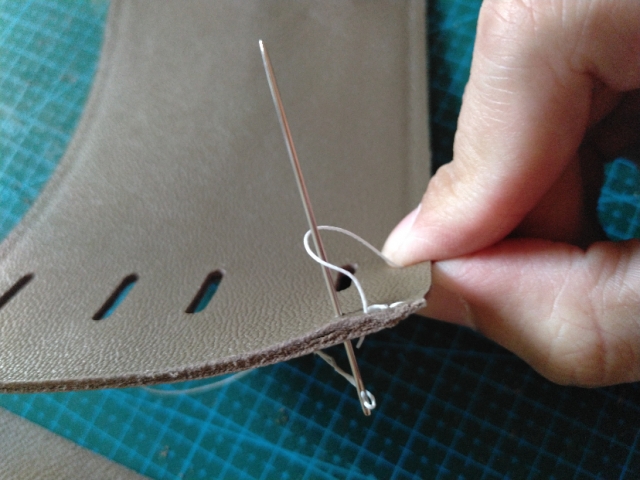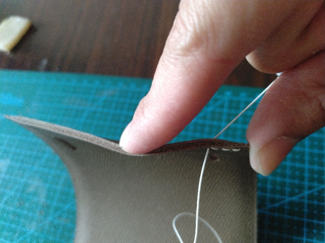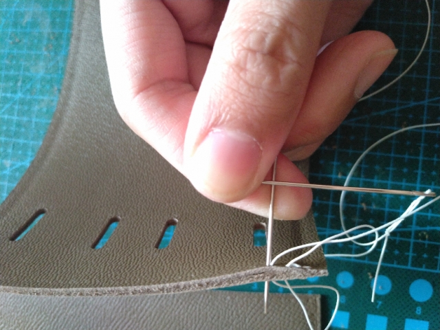 我比较习惯从后往前缝,先回两针。