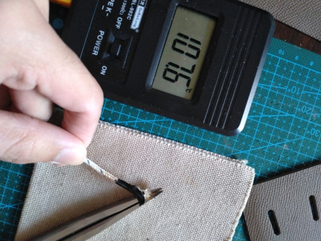烫边线温度大概100度左右,酒精灯外焰加热8、9秒那样,如果怕把握不好,温度可以低些,压线力度大些 。