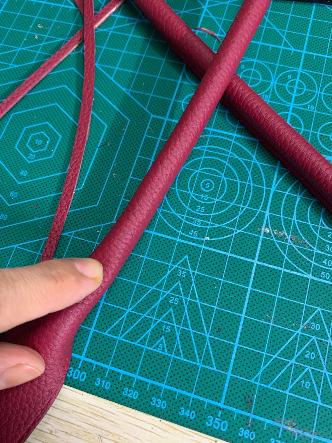 今天实战发现了技术性的问题,是新手都应该注意的问题。现在在做铂金的手提,缝好线才发现手提的两头不太一样。有一头是有空隙的。就是皮绳芯跟面皮包裹的时候没包紧。现在手指压下去能感到有很大的空隙新手上路的时候注意啦!