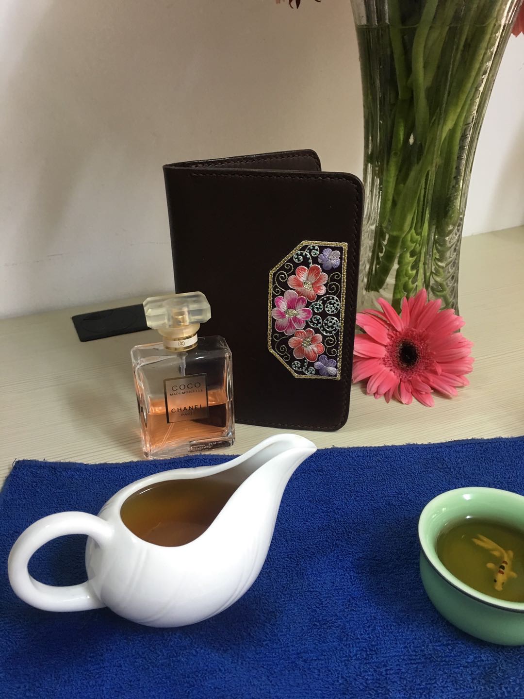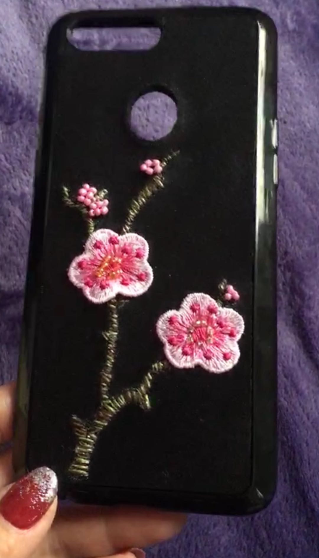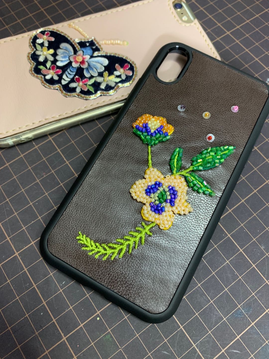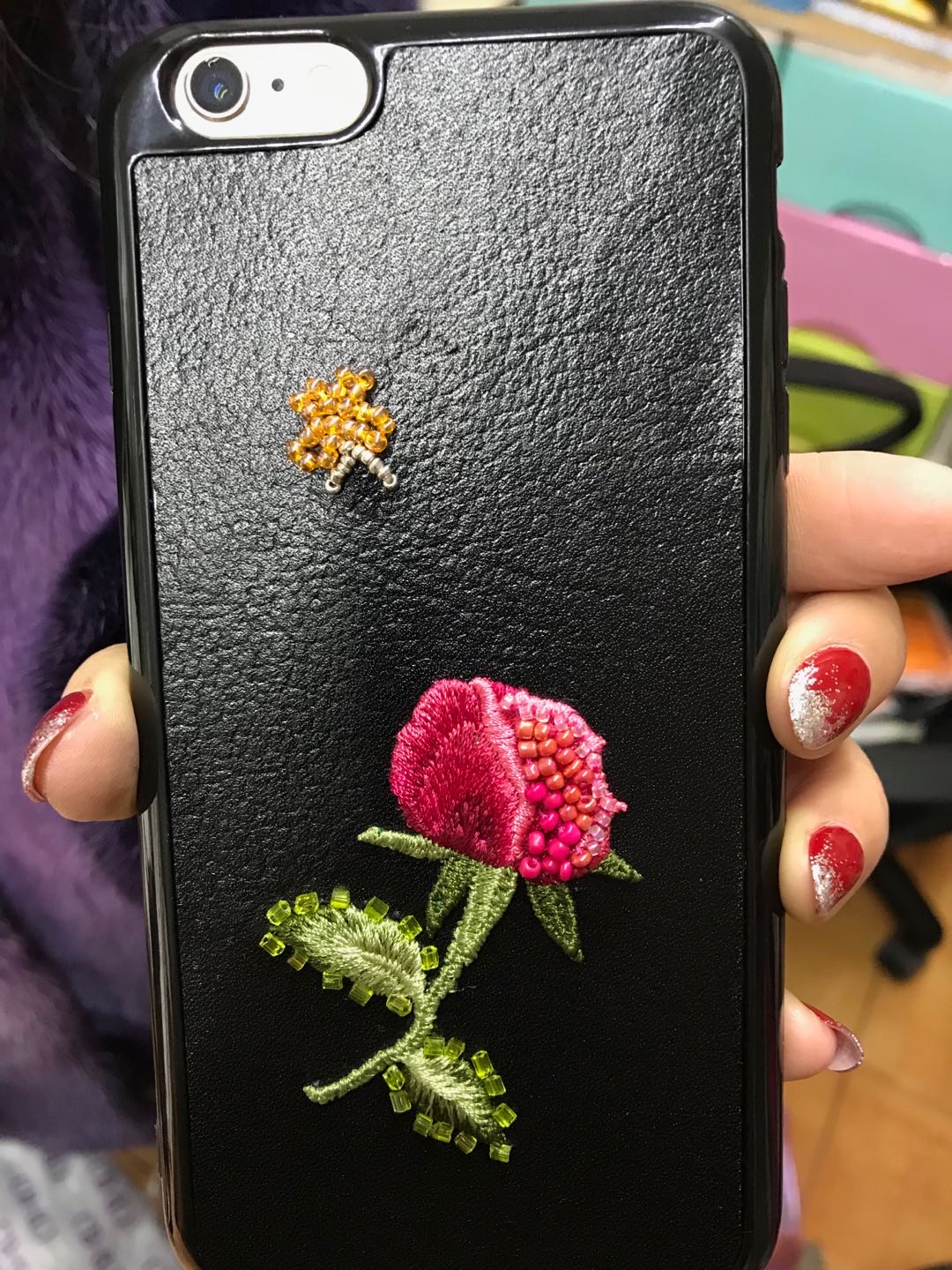初绣手机壳的时候,没技巧,直接用绣花针在皮子上下针,手指被针扎的千疮百孔蜕了一层皮,后来就知道用锥子扎好眼再用绣花针穿过皮子,手指就不会那么悲惨了。