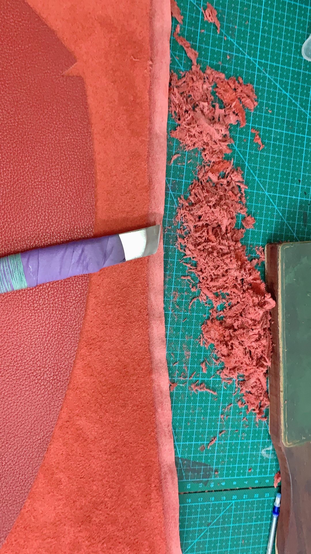 下面是进皮圈前买的纸质版型,买的练手皮,自己琢磨着做的,没有标准的削薄,没有起鼓的弧度,也没有精确的斩位数,就是硬给拼凑起来了。需要处理的细节问题很多,只能看看外表。