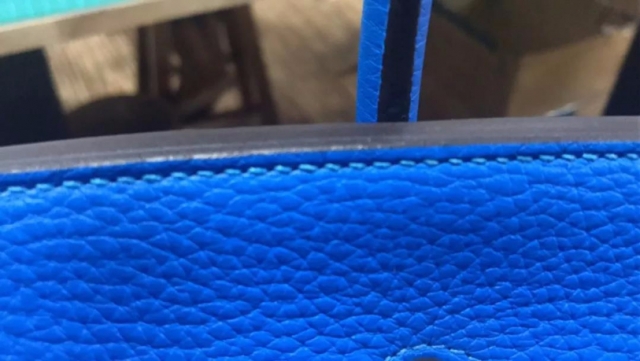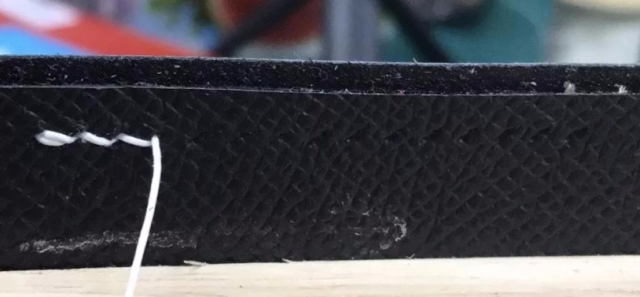 这两张图是原版Hermes的烫边线效果。H包在皮边缘的处理已经规模化了,所以你看不到线与边线的节奏感了。如果我们做出hermes这样的边线,一定给客户退货。