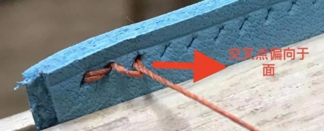 1)有交叉的一面,无论怎么拉线都是波浪线,因为已经交叉一起,两根线高低走位基本固定。但要注意,交叉点不要浮于皮面,否则很难看,一般我习惯是交叉的一面垂直于皮面方向拉线,让交叉点恰好拉进皮面。