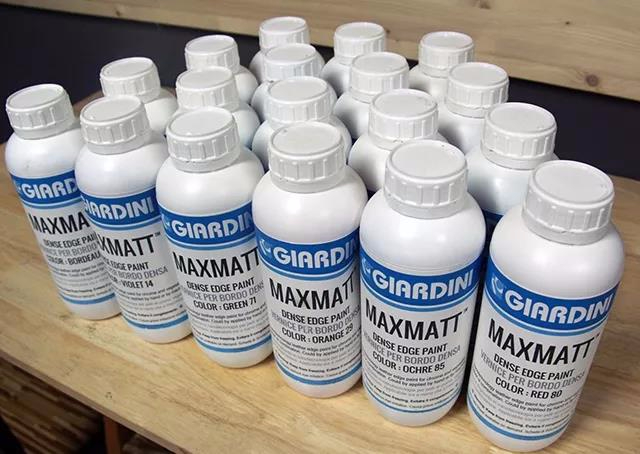 一种是“进口的意大利芬尼斯”可烫式边油,另外一种是我们现在在用的giardini出的浓稠型边油。