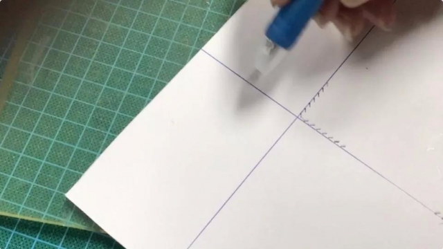 图二 面交叉手法(正斩,由近到远手法示例) 左手往上提,右手垂直于皮面即可。