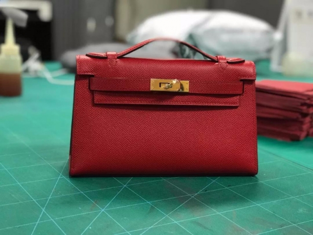 例如我分别用比较柔软的swift小牛皮、和epsom手掌纹小牛皮做一款定型包,就做下面这个mini凯莉: