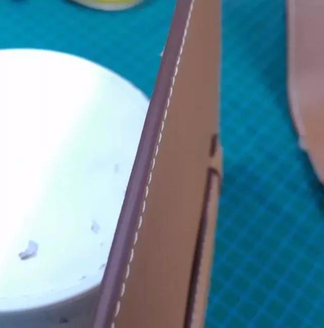 我们给很多国外轻奢、奢侈品牌做过维修,他们的油边谈不上什么匠心。皮边打磨后,先上填充剂,让皮边缘光滑平整,然后再涂抹边油,自然干透。这会出现一个问题,填充剂把皮纤维和边油隔离开了,皮包用的一段时间,油边可以整块撕下来。这就是奢侈品牌为了追求效率和外观的靓丽,牺牲了耐用性。我们不要学习这些。